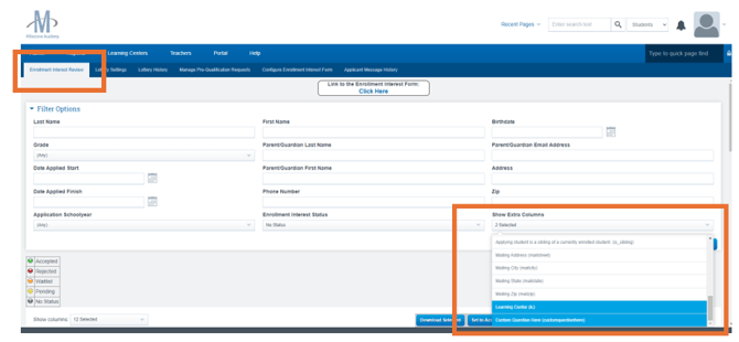 On the Enrollment Interest Review Page be sure you have all you extra columns showing, before going to the Manage Pre Qual Tab