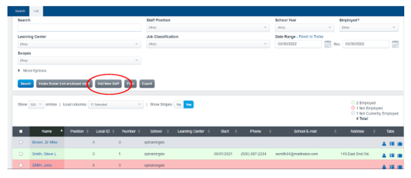 Important: Before adding a new staff member, make sure to check for existing records by following Step 2.