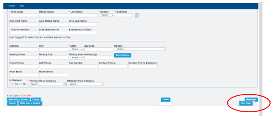 - Continue clicking Next to complete all required tabs, including Demographics, Education, District Information, and Language Fluency.