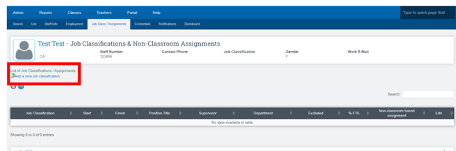 - Step 3. Select the Job Classification field. If a teacher, enter the FTE (what % of their day is spent teaching.) If a Classified member, choose the Job Classification and then select from one of the checkboxes below.
