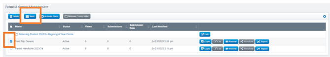 Click the checkbox next to the form you want to send