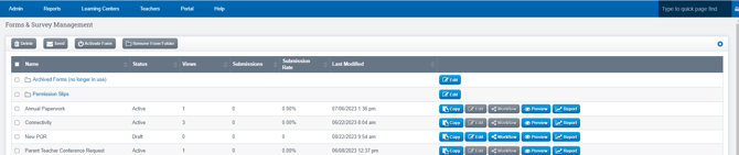 - Folder: Store multiple forms for the same topic Ex : Field Trips
