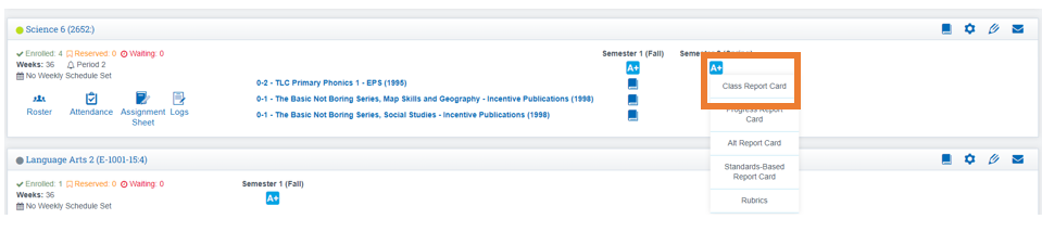 The Classic Report Card in the CMS allows schools to generate traditional student progress reports with a familiar layout.