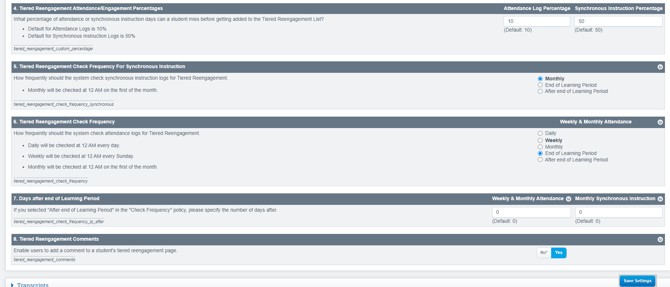 - The policies for Tiered Reengagement have been updated to match the new requirements for adding students to Tiered Reengagement from the State set in AB181.