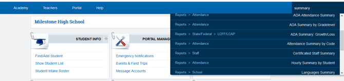 - You can use the quick search to quickly find students, parents, staff and classes.