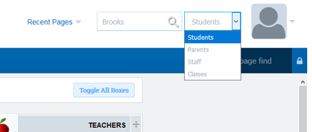 2. Quick Search for Students, Parents, Staff, and Classes (Right side of Header to the left of your avatar)