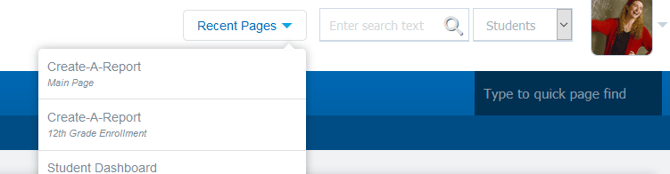 - Quick Search for pages (Right side of the Blue Menu Bar)