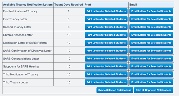 - Select the checkbox next to each student for whom you would like to send truancy letters.